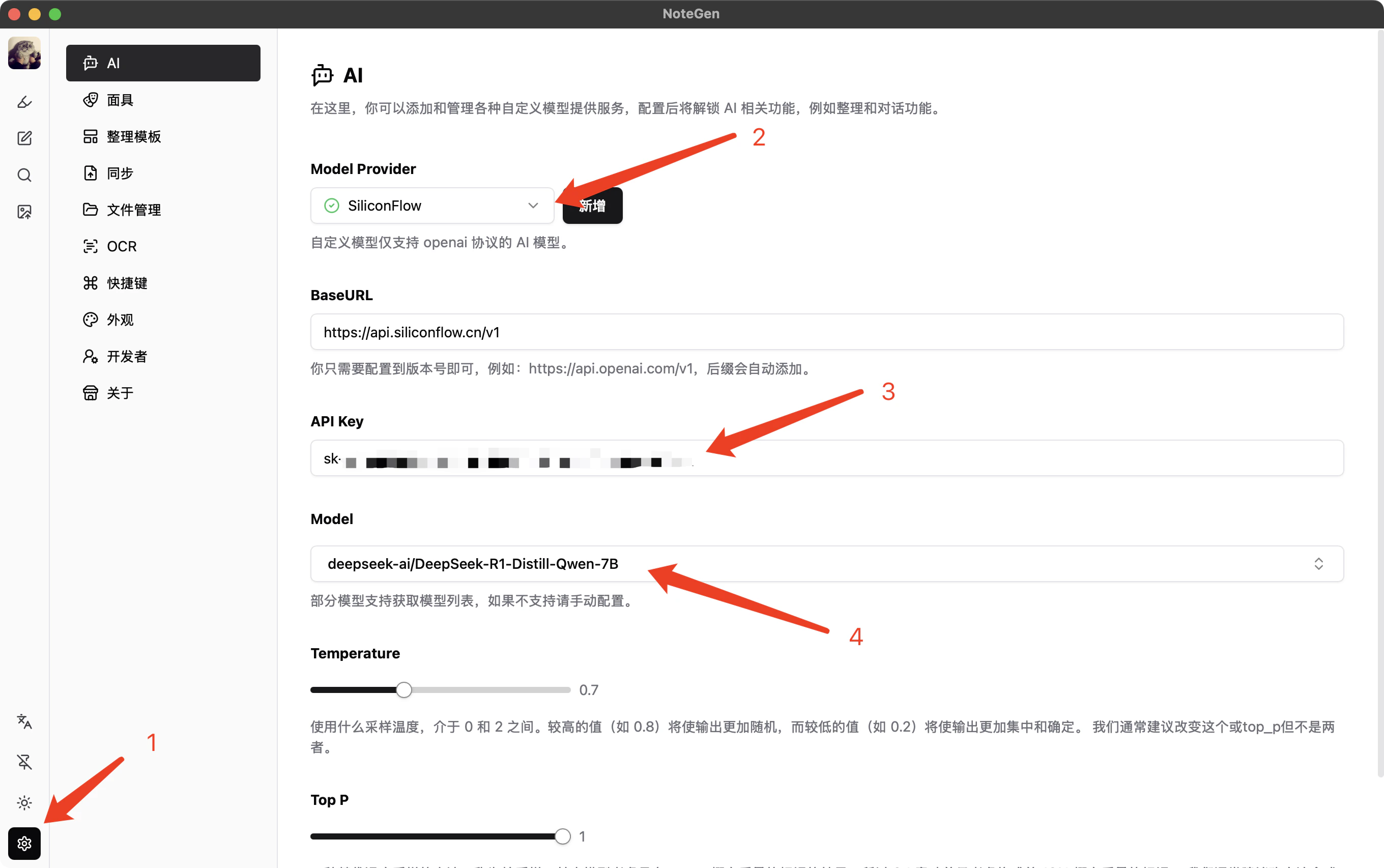在 NoteGen 中使用 SiliconFlow